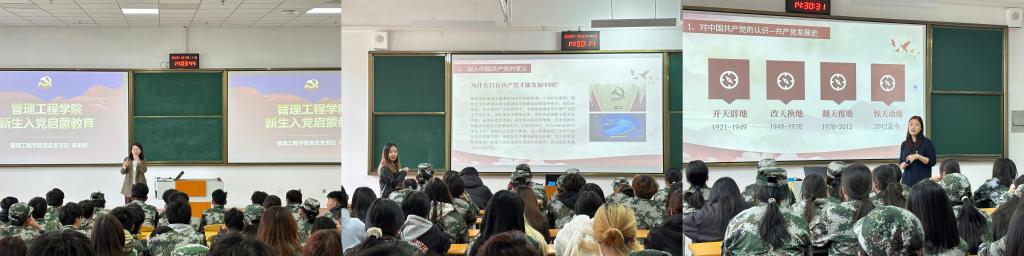 为引导青年学子扣好理想信念“第一粒扣子”,深刻理解党员身份的责任与价值,10月22日下午,管理工程学院开展“全体党员教师讲党课”入党启蒙教育活动,管理工程学院党总支书记朱彬彬、学生党支部书记贺培培以及党员教师共同走上讲台,为新生带来一场兼具思想深度与专业温度的“信仰公开课”。