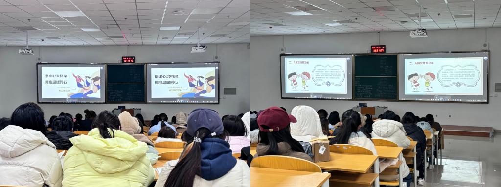 讲座中,陈梦婷老师从“人际交往基础知识”、“人际交往模式及对心理健康的影响”和“人际交往艺术”三个主题进行讲述,针对大学生常见的自傲与自卑、孤独猜疑、交往恐惧等问题,分享提出自我调适方法,解析不同人际交往模式分析其对心理健康的影响,帮助同学们在相处中认清自我、学会协作。同时陈梦婷老师给出实用技巧:初次见面保持微笑、注重礼节;交谈时认真倾听、真诚赞美;相处中把握分寸、尊重边界,助力同学们轻松掌握和谐相处的方法,建立健康的人际关系。